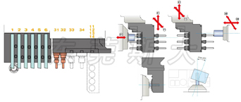 | 四、斯大走心機(jī)SB-20RtypeC在標(biāo)準(zhǔn)規(guī)格橫向鉆孔單元4軸的基礎(chǔ)上,可配備橫向鉆孔單元5軸型、可交換式橫向鉆孔單元5軸型/5軸高速型4種刀架臺(tái),而可交換式橫向鉆孔單元5軸中的右側(cè)3軸,采用模塊化設(shè)計(jì)配備豐富的刀具單元,可根據(jù)工件需要自由安裝多種可交換式工具,展開(kāi)多樣的復(fù)合加工。 |