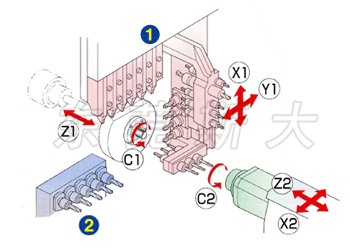 | 四、斯大走心機(jī)SR-32JM橫向鉆孔5軸單元下方2軸,采用模塊化設(shè)計(jì),可根據(jù)工件需要自由安裝可交換式工具,實(shí)現(xiàn)工藝的靈活性,同時(shí)正背面套筒座及背面專用單元,也可根據(jù)用戶需要選擇最合適的套筒座及刀具單元軸數(shù)量。 | |||
