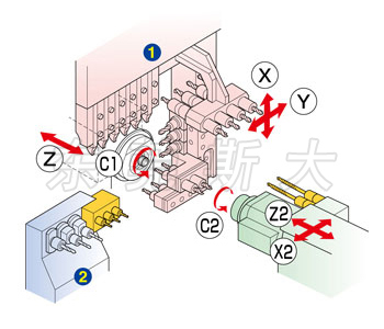 | 四、斯大走心機(jī)SR-20JtypeN橫向鉆孔5軸單元下方2軸,采用模塊化設(shè)計(jì),可根據(jù)工件需要自由安裝可交換式工具,實(shí)現(xiàn)工藝的靈活性 | |||